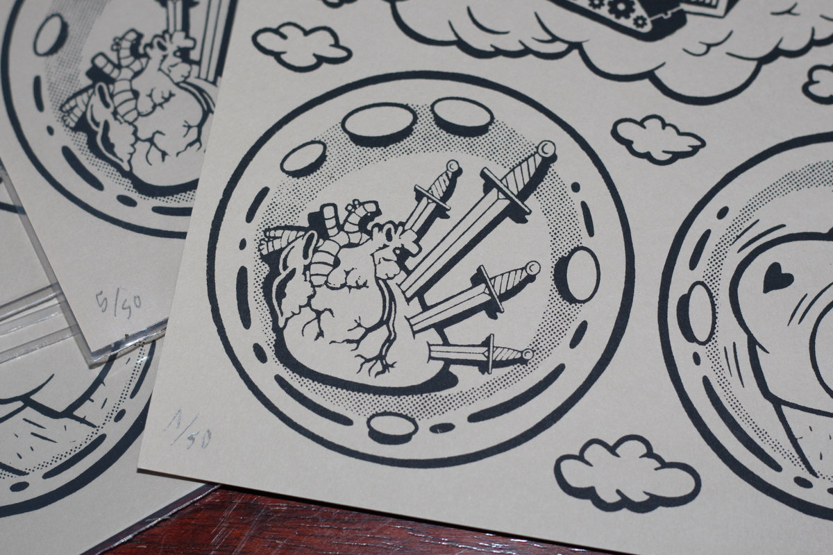 La serigrafía se puede adquirir en Bandcamp, mide 30 cm x 30 cm y se envía en una funda de vinilo.