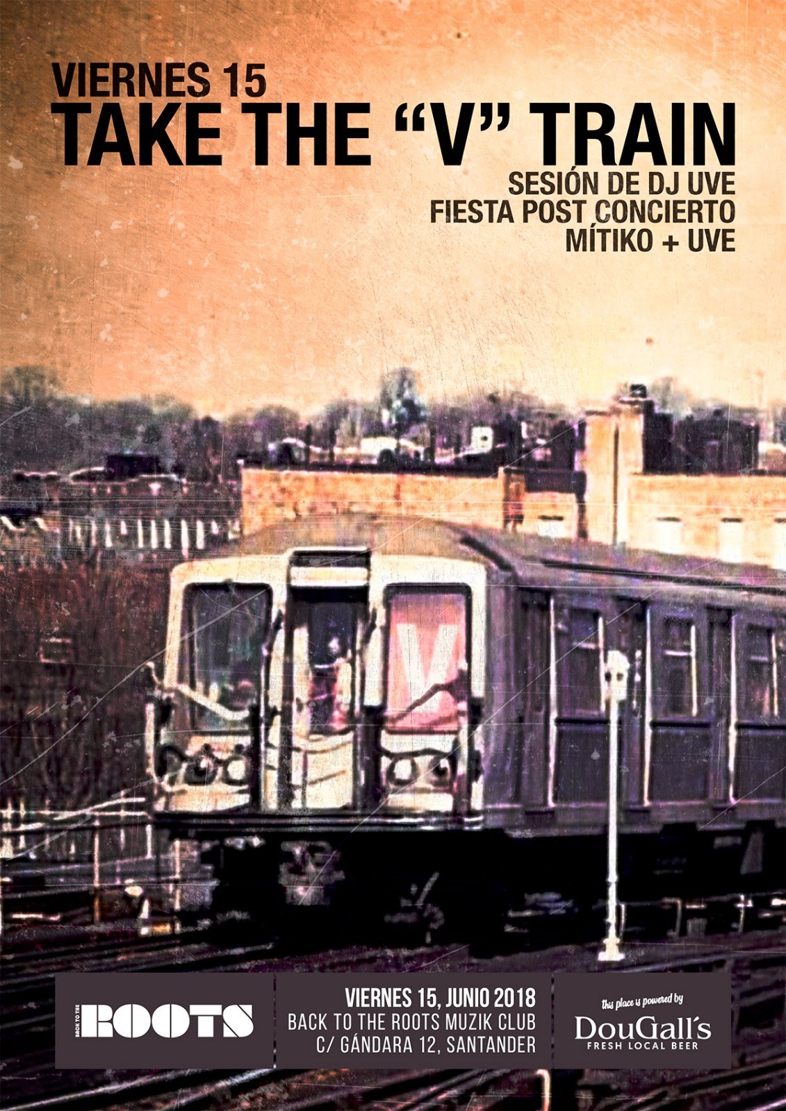 …vamos, el after party. Sí, por supuesto, tenemos una en el Roots. Después del concierto, UVE empaqueta el equipo y te la prepara toda la noche a base de Hip-Hop y Funk. Vamos, que tienes toda la noche preparada para gozarrrrrr…