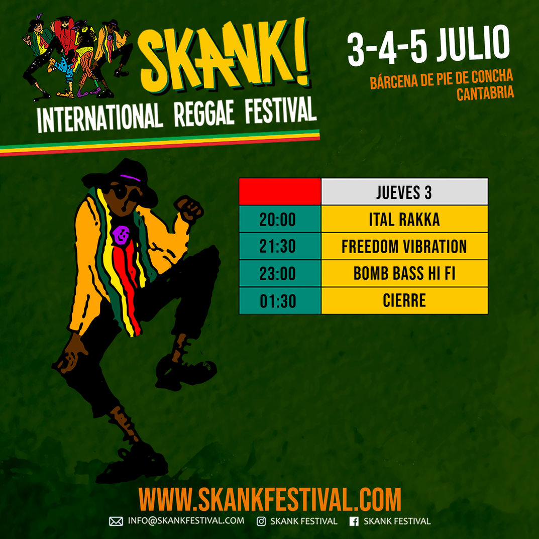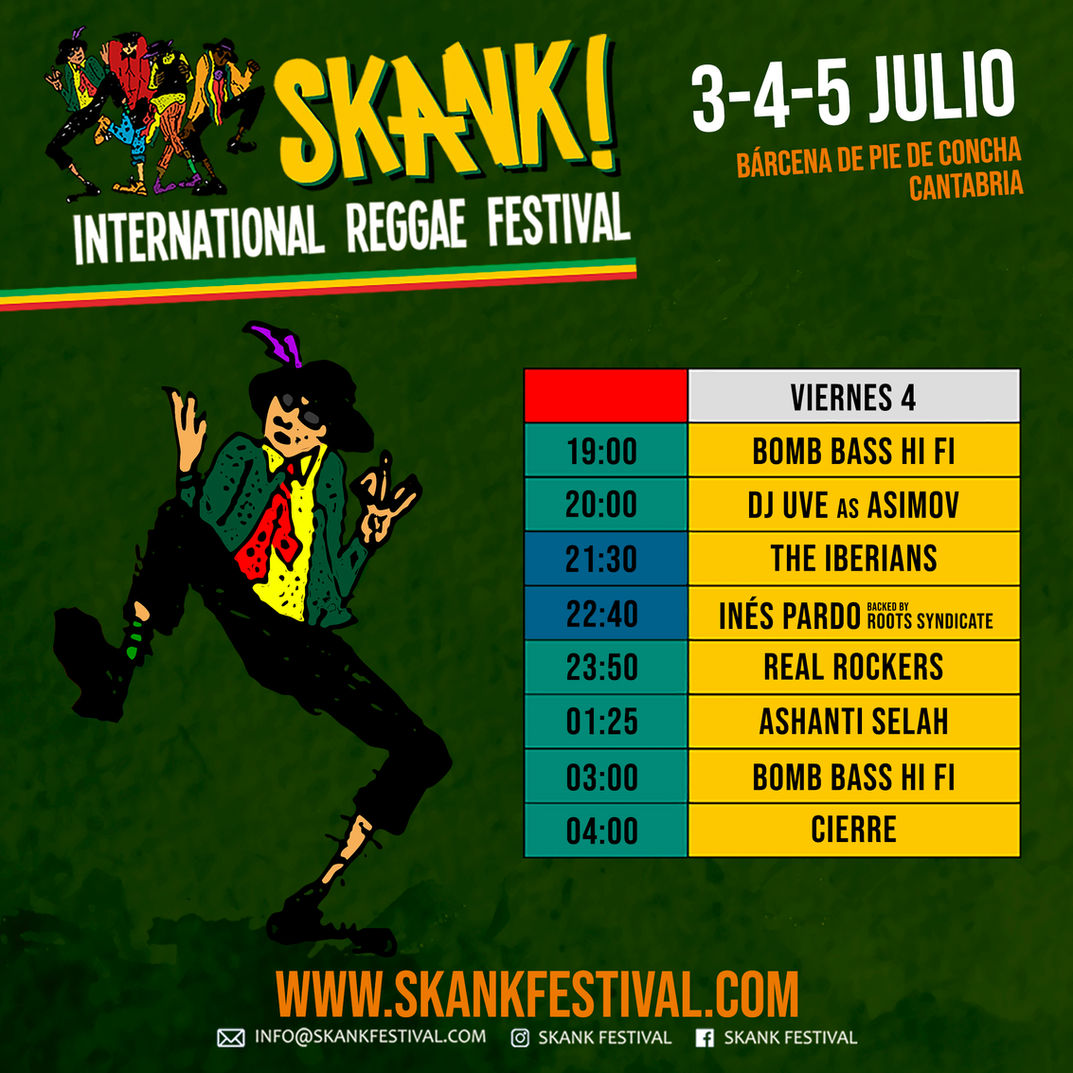 Los días 3, 4 y 5 de julio de 2025, la localidad de Bárcena de Pie de Concha, una de las más bonitas de Cantabria, acoge una nueva edición del Skank – International Reggae Festival, un evento imprescindible para los amantes de la música jamaicana en todas sus formas: roots reggae, dub, lovers rock y más.